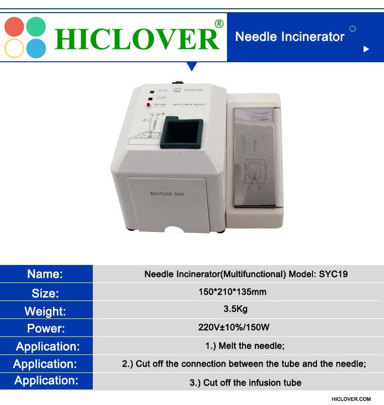 Needle Incinerator: Melt the needle waste, cut off syring tube with needle, cut off the infusion tube.